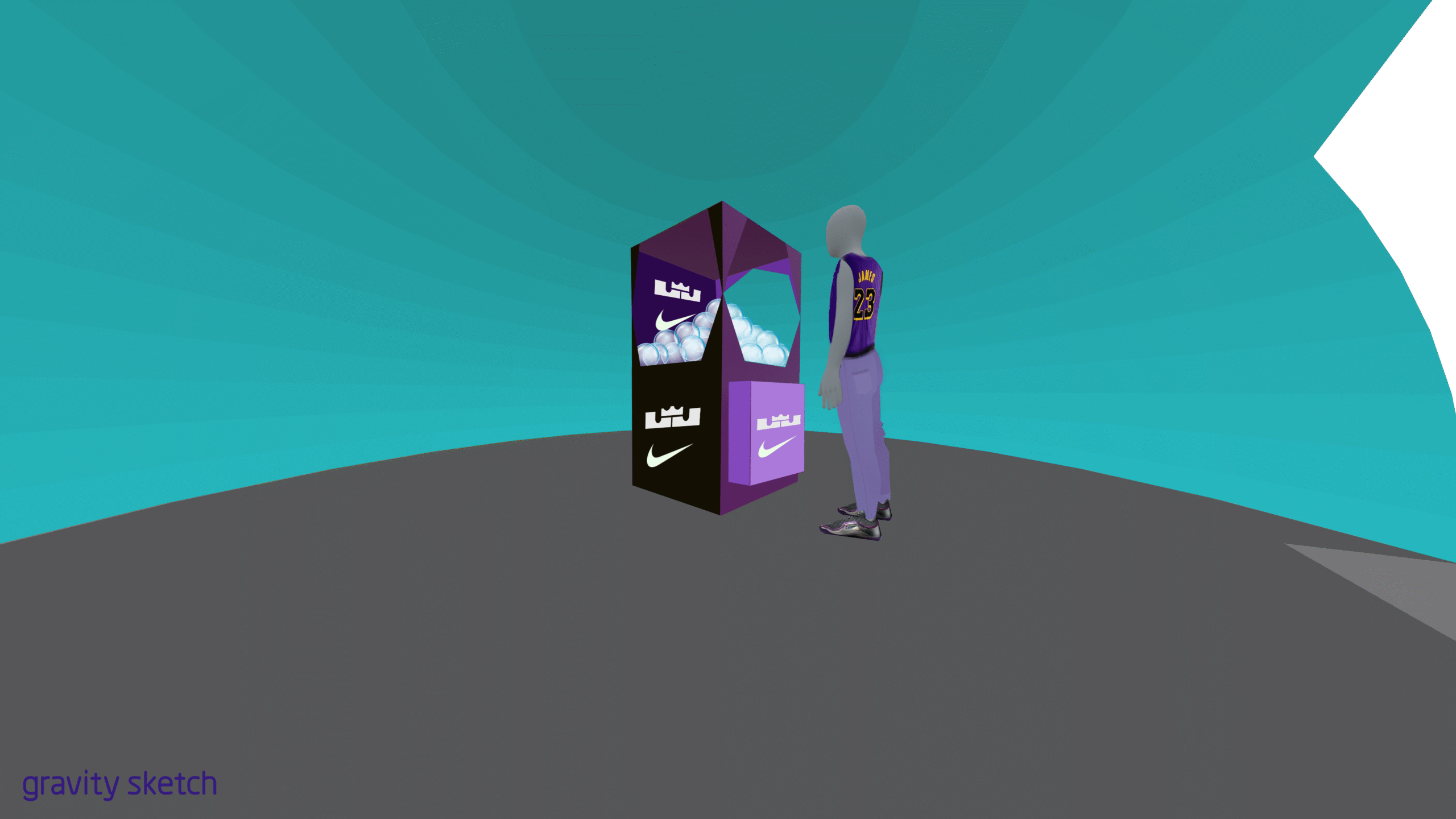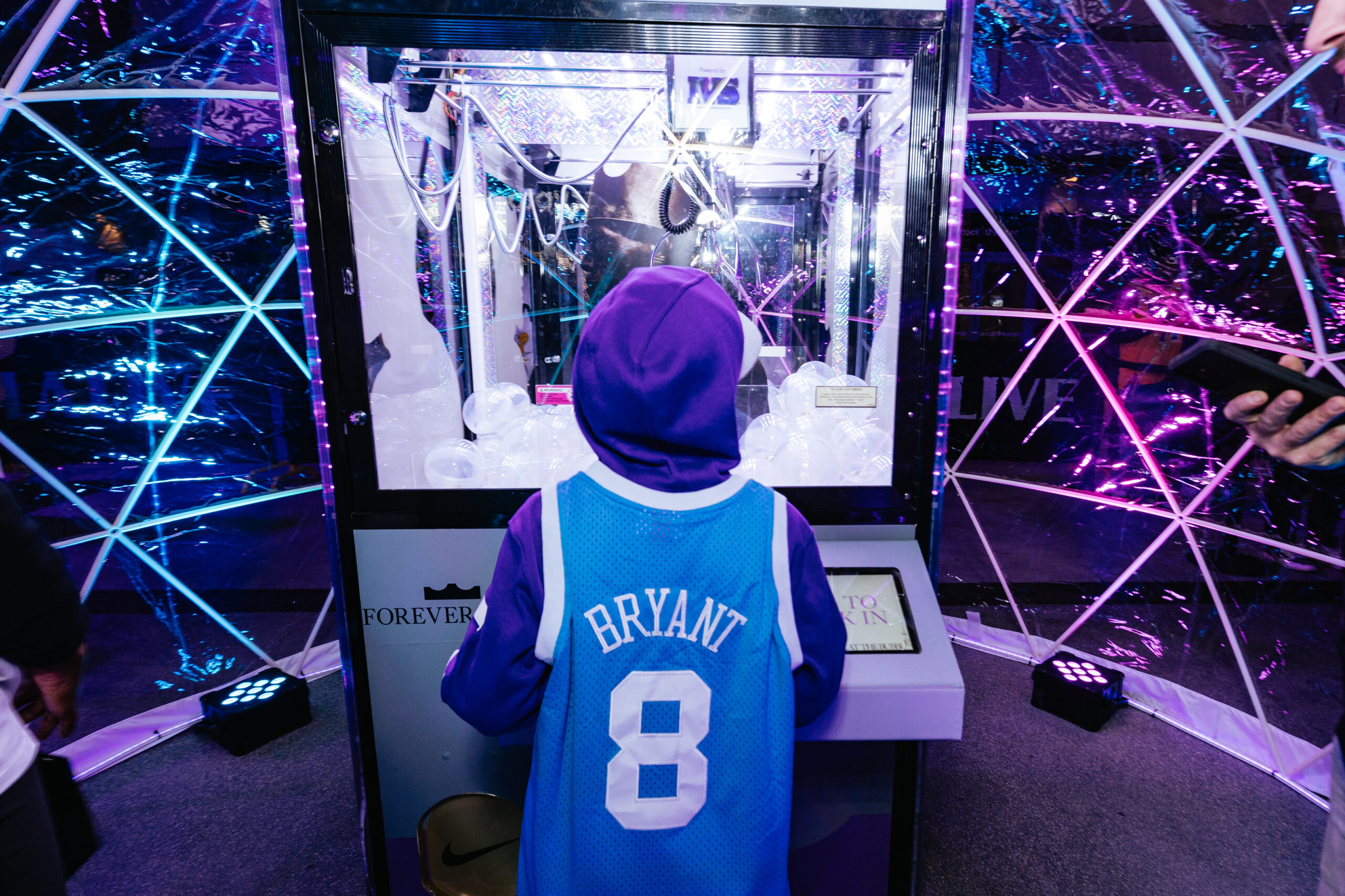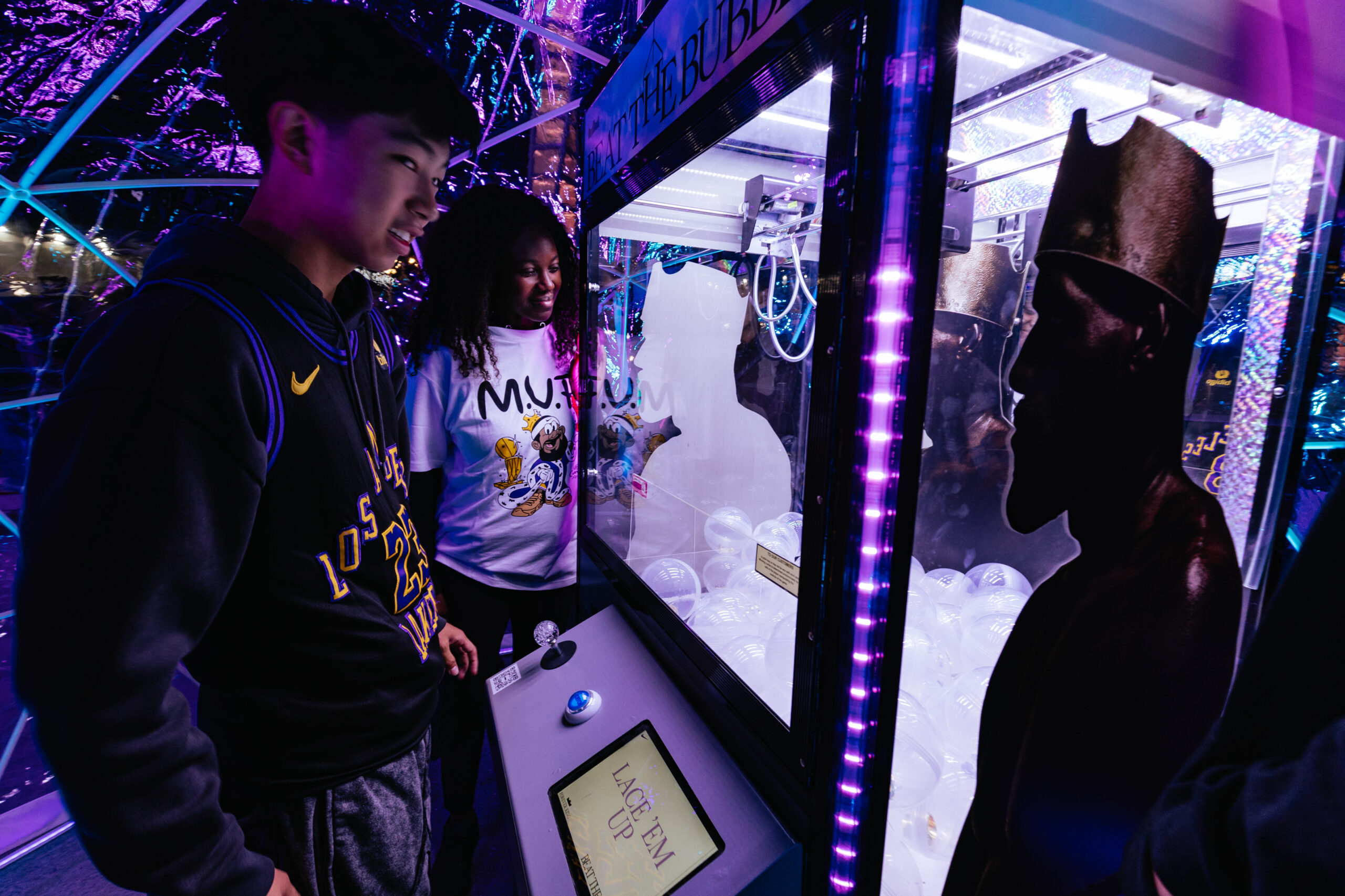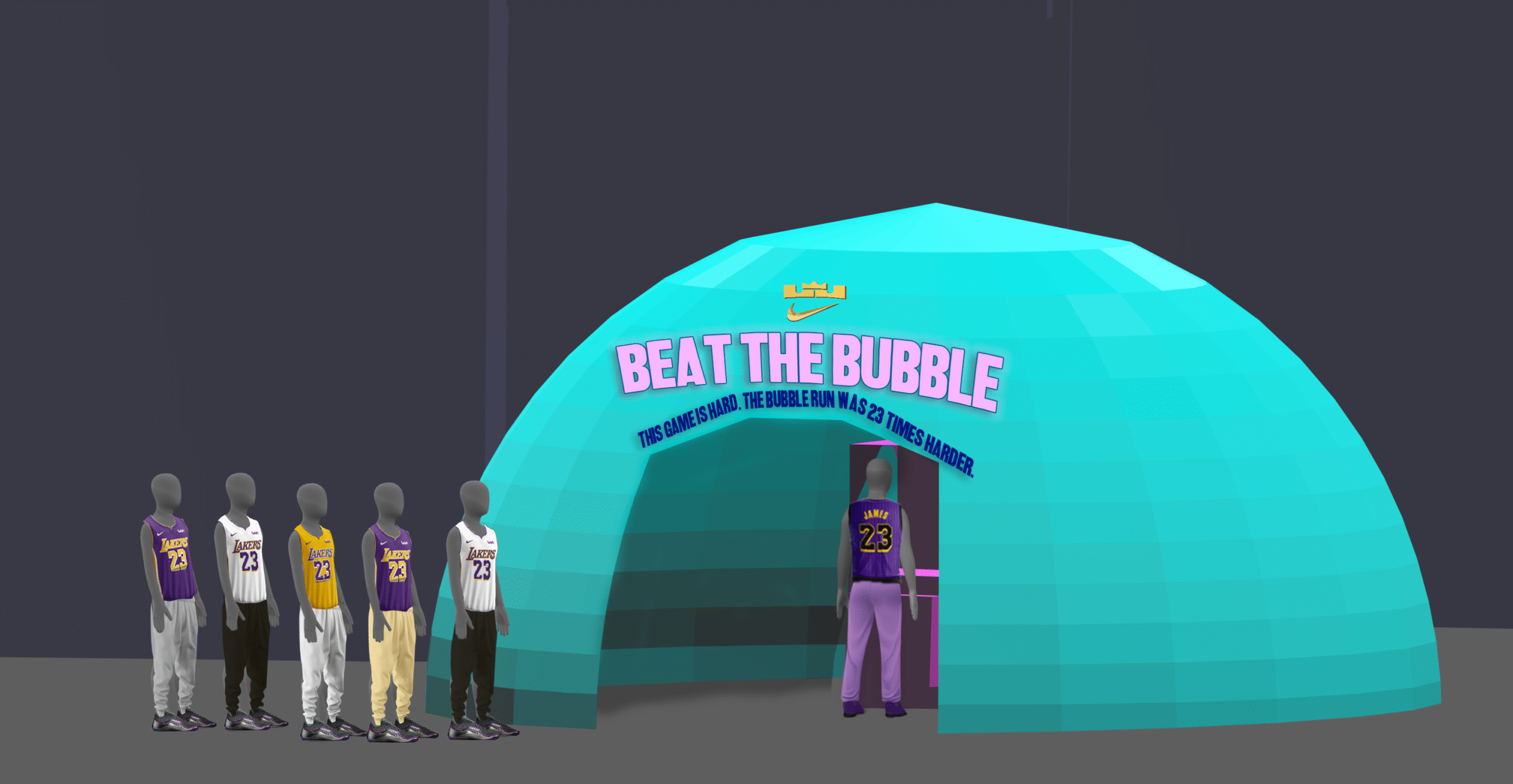 WE CREATED A CLAW MACHINE TO CELEBRATE THE HIGHLY ANTICIPATED, LIMITED RELEASE OF THE BUBBLE BOY LEBRON 23s AT CRYPTO.COM STADIUM. ECSTATIC FANS STEPPED UP TO TRY AND ‘BEAT THE BUBBLE’ FOR A CHANCE TO WIN VARIOUS PRIZES AND THE LIMITED EDITION SHOES. CLICK THROUGH TO SEE THE GALLERY AND CONCEPTING SKETCHES.