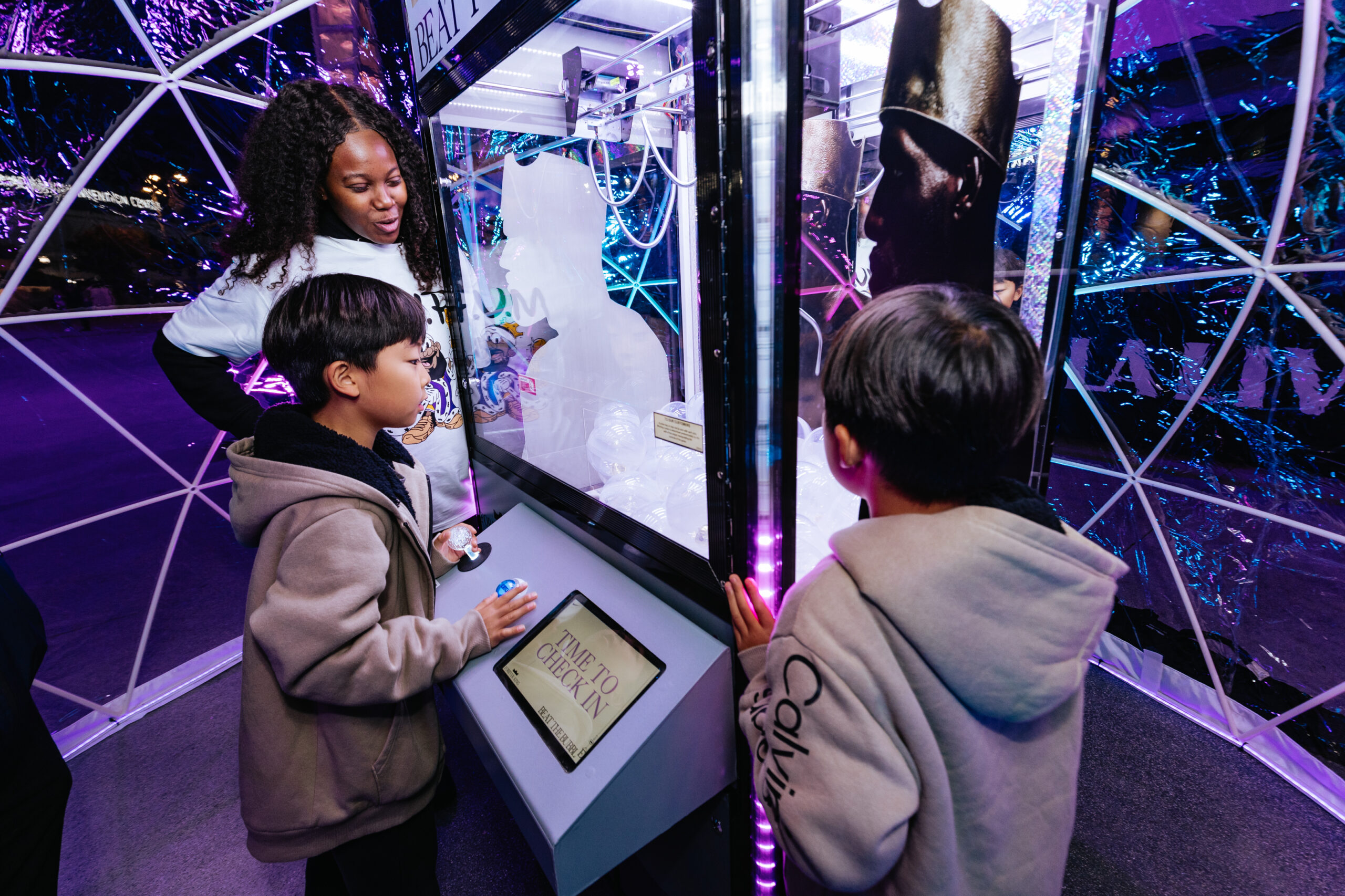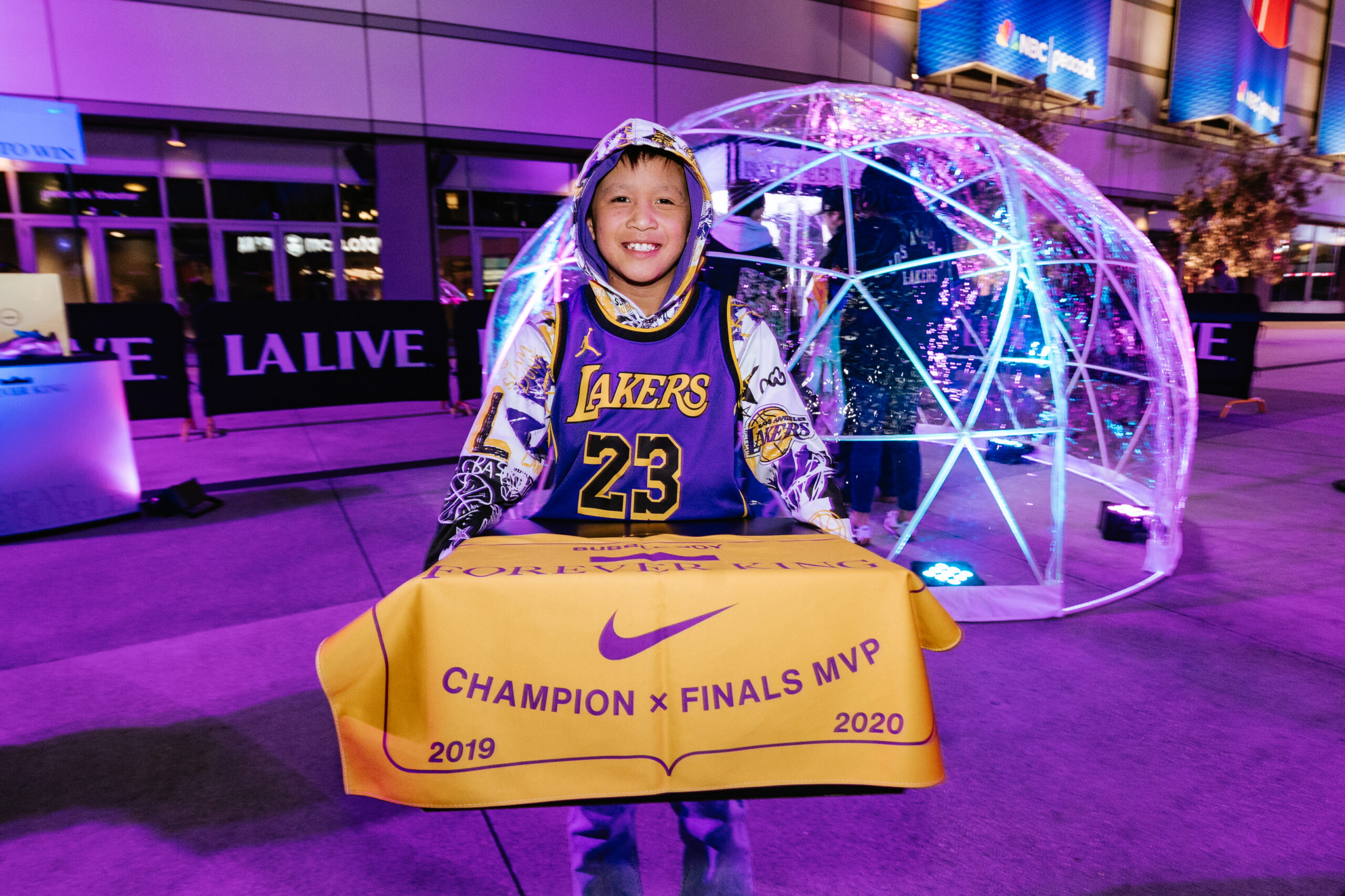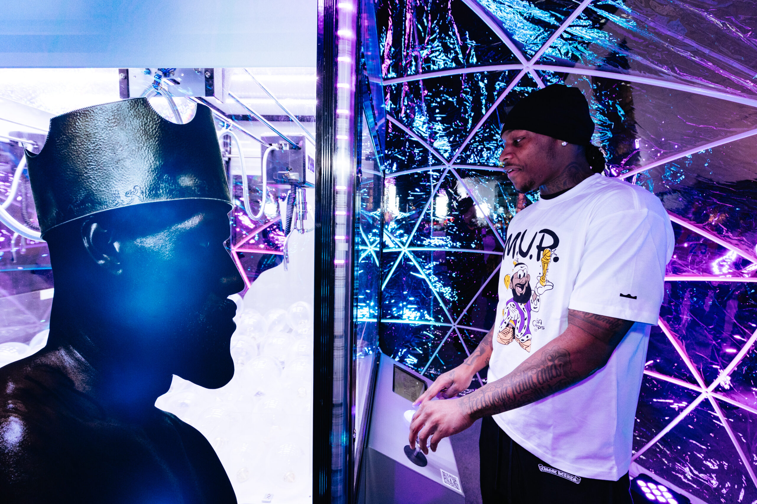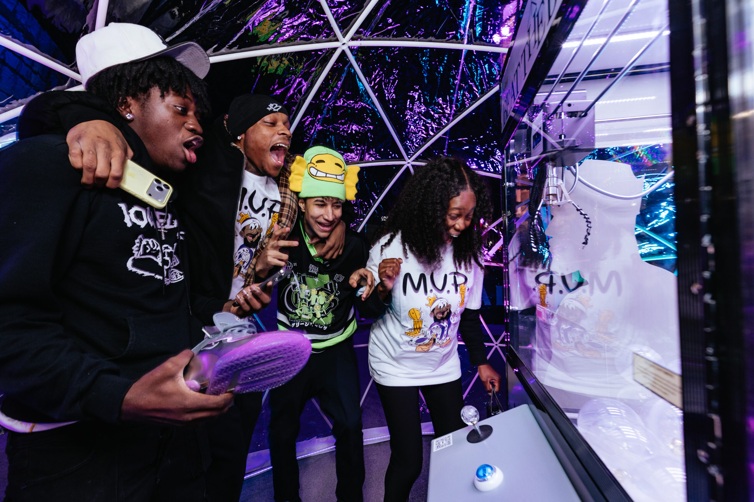WE CREATED A CLAW MACHINE TO CELEBRATE THE HIGHLY ANTICIPATED, LIMITED RELEASE OF THE BUBBLE BOY LEBRON 23s AT CRYPTO.COM STADIUM. ECSTATIC FANS STEPPED UP TO TRY AND ‘BEAT THE BUBBLE’ FOR A CHANCE TO WIN VARIOUS PRIZES AND THE LIMITED EDITION SHOES. CLICK THROUGH TO SEE THE GALLERY AND CONCEPTING SKETCHES.
